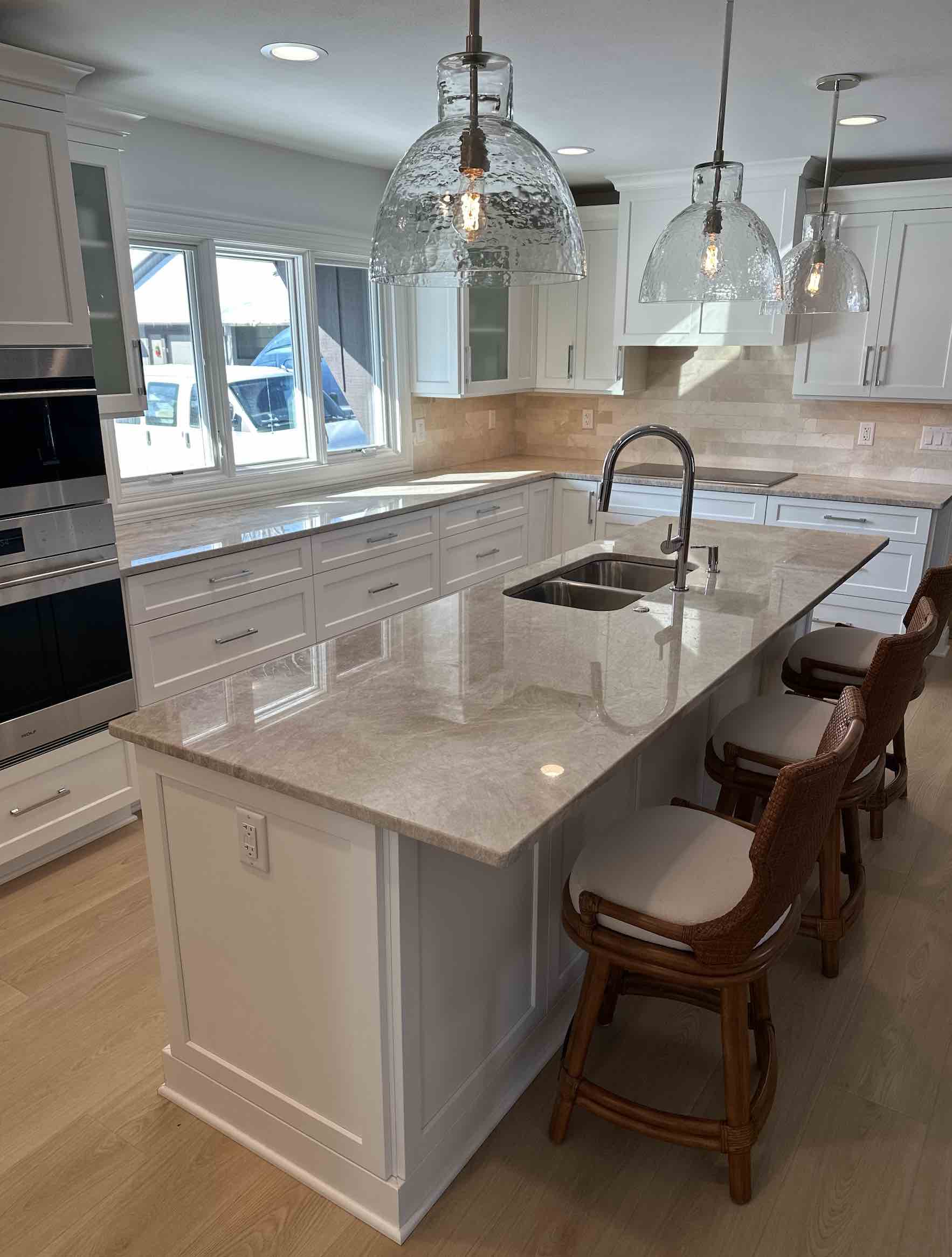 Stone countertops offer a beauty, durability and functionality other materials lack. Literally rock solid, you can depend on a stone countertop to last for decades with only minimal cleaning and maintenance. Plus, since every natural stone is unique, you are ensured a completely custom look for your kitchen. Engineered stone lets homeowners pick vibrant, striking colors not found in nature. Whether you choose natural or manufactured stone, a stone countertop will add character to your kitchen without sacrificing performance. We can further customize the appearance via your unique layout and edging choices. These customizations can include whether or not to have a full-length or 4 inch backsplash, where the sink(s) are, the shaping of the corner edges, and more.